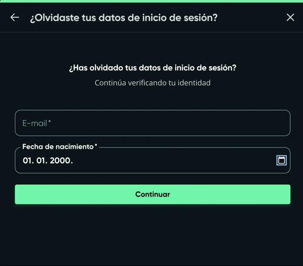 - Si te registraste en otro sitio del operador, indica tu teléfono o email para confirmar que es tu cuenta y así completarás este registro.
